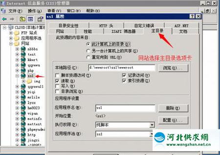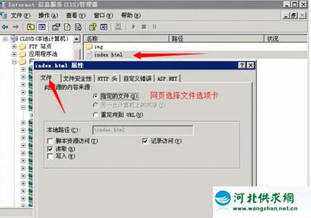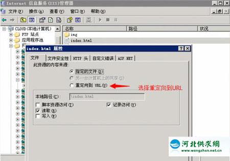 打開IIS,找到要重定向的網(wǎng)站或者網(wǎng)頁,右鍵查看屬性,如果是網(wǎng)站則選擇主目錄選項卡,網(wǎng)頁則是文件選項卡。如下圖所示: