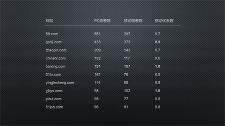 從該數(shù)據(jù)明顯可見的是,三大招聘網(wǎng)站(智聯(lián)、前程無憂、中華英才)的流量其實(shí)并不理想,其流量很顯著的差于58同城和趕集網(wǎng)。