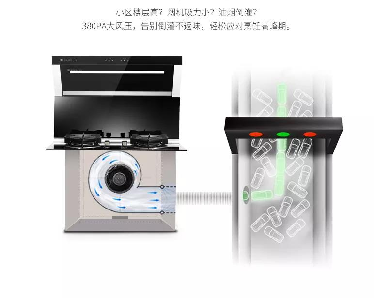 與傳統(tǒng)的油煙機區(qū)別是,博凈分體式集成灶采用的是微空氣動力學原理。它可以把污染和外部環(huán)境進行雙向的隔離效果,吸油煙率高達99.6%以上,從而在油煙擴散之前可以有效地消除蒸汽和油煙,而且也聞不到任何煙味,致力給廚房帶來好的環(huán)境,從而給你的身體帶來健康!傳統(tǒng)油煙的吸煙率相對低很多。