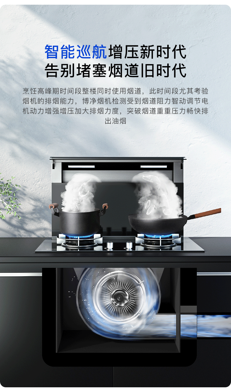 博凈分體式集成灶超大風(fēng)力,側(cè)吸下排技術(shù),油煙吸凈率直達(dá)99.6%。另外,智能巡航系統(tǒng),自動(dòng)開(kāi)啟最大風(fēng)量,科學(xué)排煙,廚房始終保持無(wú)油煙的清新?tīng)顟B(tài),讓你輕松與油煙說(shuō)byebye ~