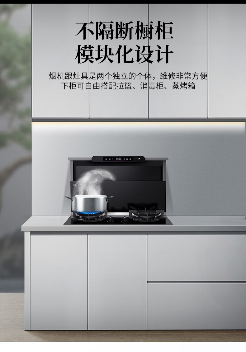 博凈分體式集成灶不僅外觀出眾,功能更是強(qiáng)大。它集燃?xì)庠?、油煙機(jī)等多種功能于一體,完美嵌入櫥柜中,大大節(jié)省了廚房的空間。而且,它的操作界面設(shè)計得非常人性化,即使是年邁的父母也能輕松上手。最滿意的是它的吸煙效果,炒再辣的菜也不用擔(dān)心油煙四溢了。