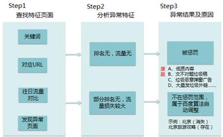 流程圖會按照三步來讓站點(diǎn)確認(rèn)到底是正常下跌還是異常下跌,在此站長第一步首先要找到特征頁面