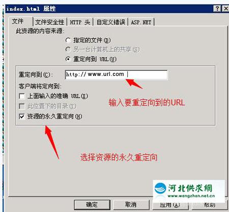 選擇重定向到URL,輸入要重定向到的URL,并勾選資源的永久重定向后點應(yīng)用。如下圖所示: